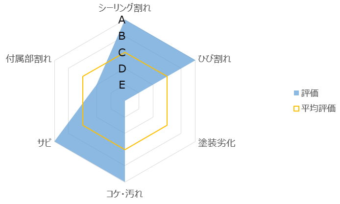 ランクの判定はレーダーチャートにも反映され、どの部分を優先的に修繕を行えばよいかが一目瞭然に判断できます。