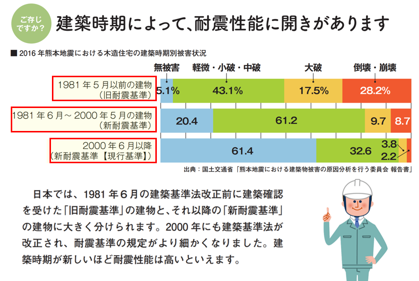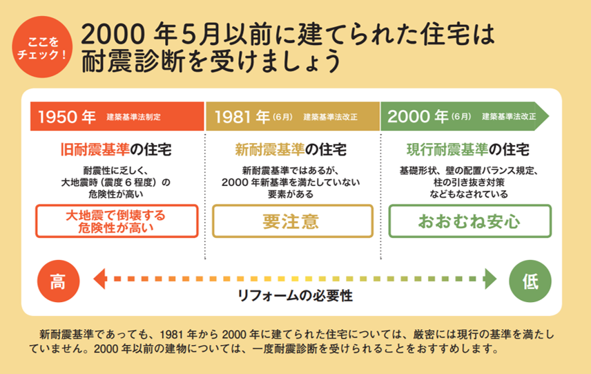 お家の耐震基準は年々更新されており、建てられた年代によって基準値が異なります。つまり、古いお家ほど最新の耐震基準に適合していない可能性があるのです。そのため、新旧の基準で開きがあることも考えられます。
