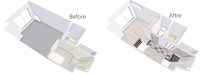 ウイークリーマンションとして使われていた部屋を賃貸物件として生まれ変わらせる提案をしてほしいという依頼を頂きました。