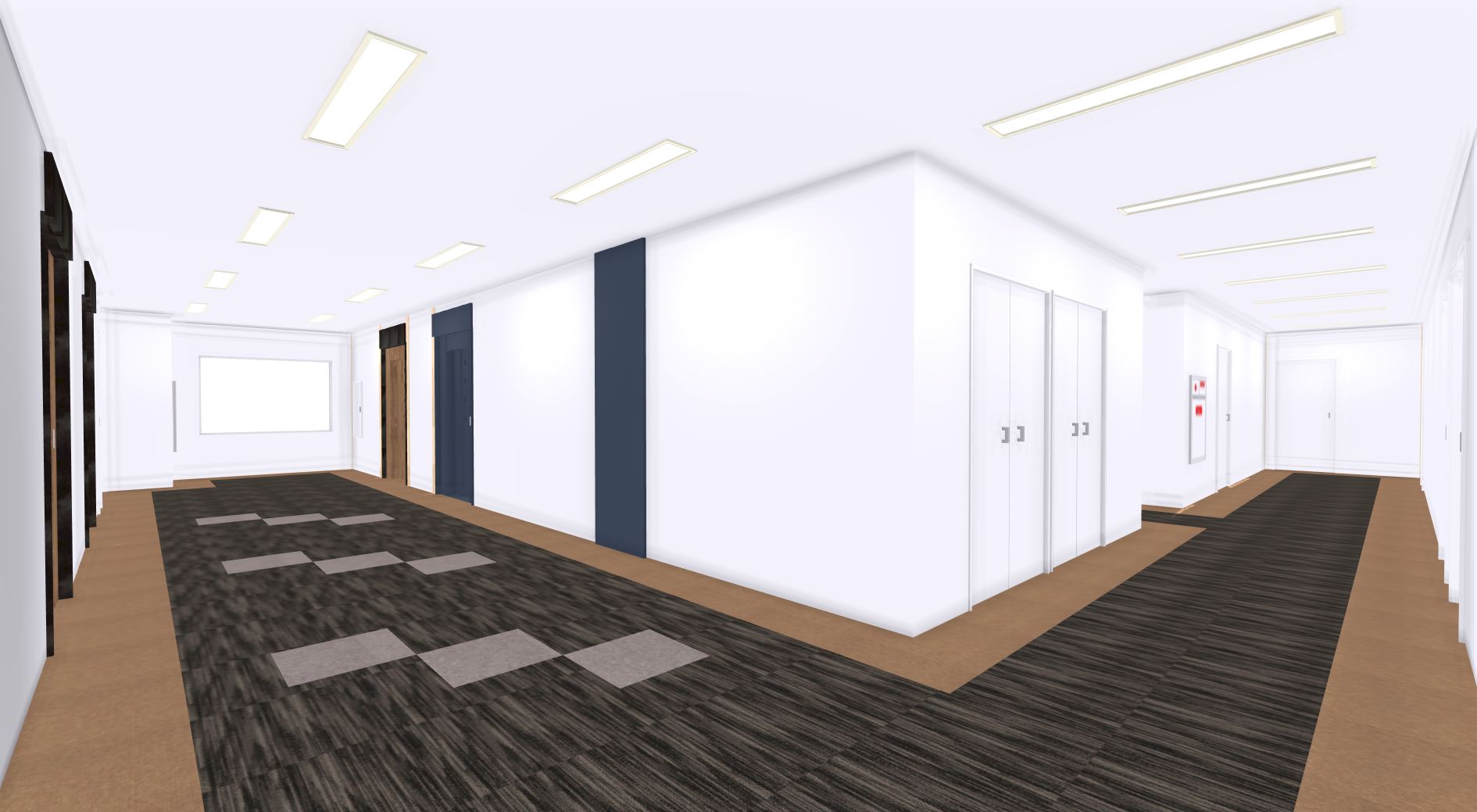 これらのデザインパースをクライアントに提案したところ、大変好評をいただきました。このプロジェクトを通じて、私たちはテナントビルの共用廊下が、ただの通路ではなく、ビルを訪れるすべての人にとっての「第一印象」を決定づける大切な空間であることを再認識しました。デザイン一つでビル全体の価値を高めることができるという事実に、改めてデザインの力を感じることができました。