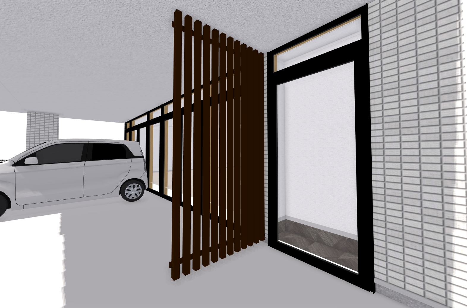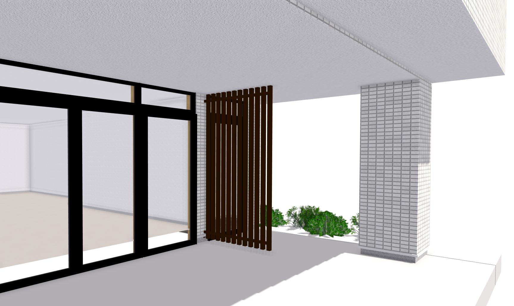 ご入居者様のプライバシーをより保護するために、通常のエントランス入口に隣接して、ルーバーの袖壁を設置するという御提案をさせて頂きました。