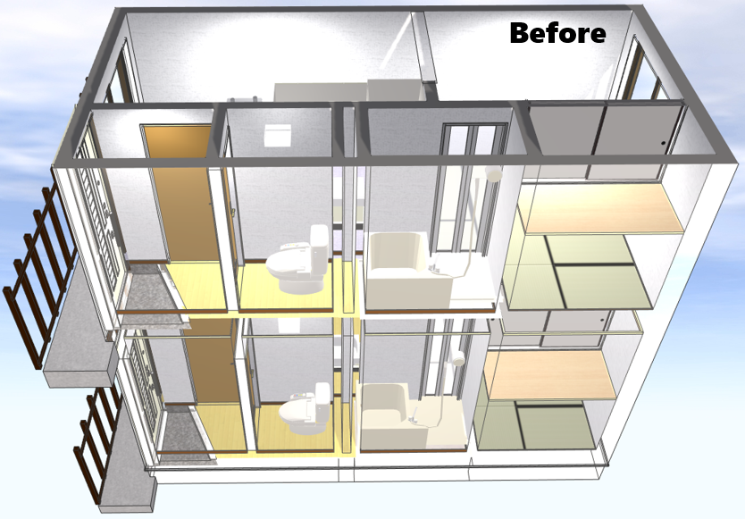 とてもエキサイティングなプロジェクトをご紹介します。クライアントからの依頼は、2階建てのアパートの上下階をつなげて、モダンで快適なメゾネットタイプの部屋にするというものです。