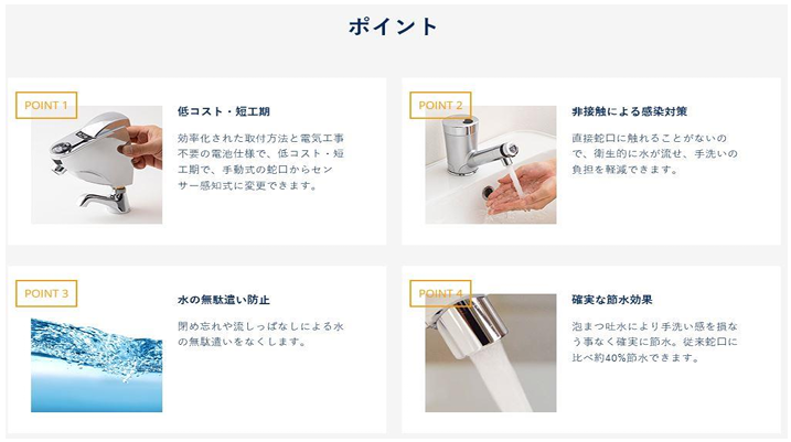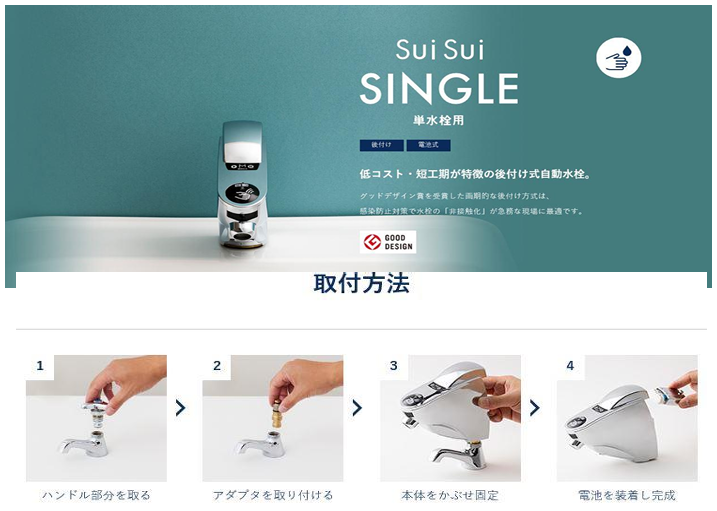各メーカーから提供されているセンサー付き水栓は、設置も簡単でメンテナンスもしやすく、忙しい現代生活にも適しています。 新しい生活様式に適した衛生設備として、ぜひお勧めしたいアイテムです。