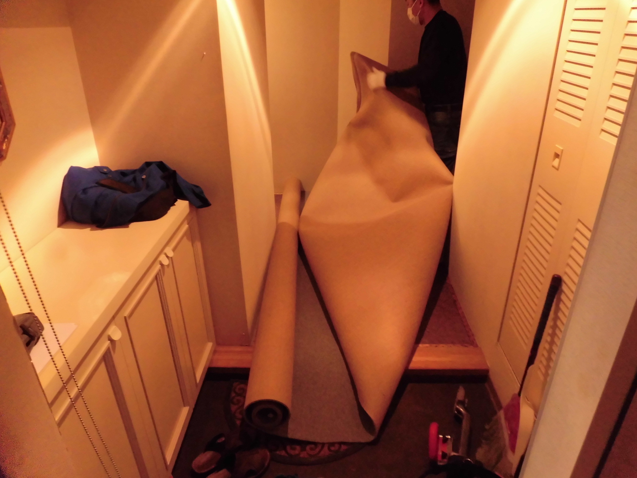 お客様に選んでいただいた素材と色合いの絨毯を丁寧に敷き詰め、角や隅も綺麗に仕上げました。絨毯の質感や色が既存のものと相違が少なく、玄関ホールにマッチして新築当時を思い出すとおっしゃって頂きました。