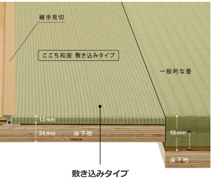 工事が必要になる敷き込みタイプもあります。施工も簡単で現代の生活様式に合うデザイン仕様になっています。