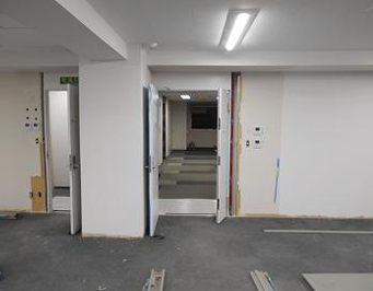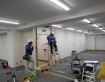 オフィス改修工事の一環として行ったスチールドアの交換工事についてご報告いたします。日常の業務に影響を与えないよう、全てのテナントの営業が終了した夜間に工事を実施しました。