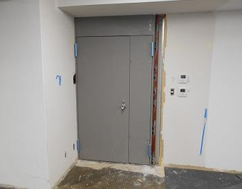 新しいスチールドアを搬入する際は、その重量を考慮して十分な人数で協力しながら行いました。ドアの取り付け位置を微調整し、しっかりと固定することで、安全性と機能性を確保しました。また、ドアの取り付け後には、開閉がスムーズに行えるかを何度も確認し、万全の状態に仕上げました。