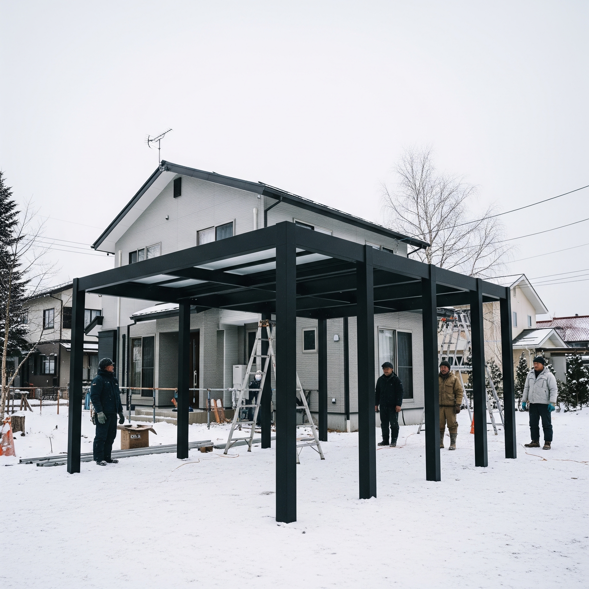 そして、もう一点非常に大切なのが「施工」です。どんなに性能の良いカーポートを選んでも、施工が適切でなければその性能を十分に発揮できません。特に雪が多い地域では、基礎の補強や柱の固定方法など、雪の重みに耐えうる施工が不可欠です。