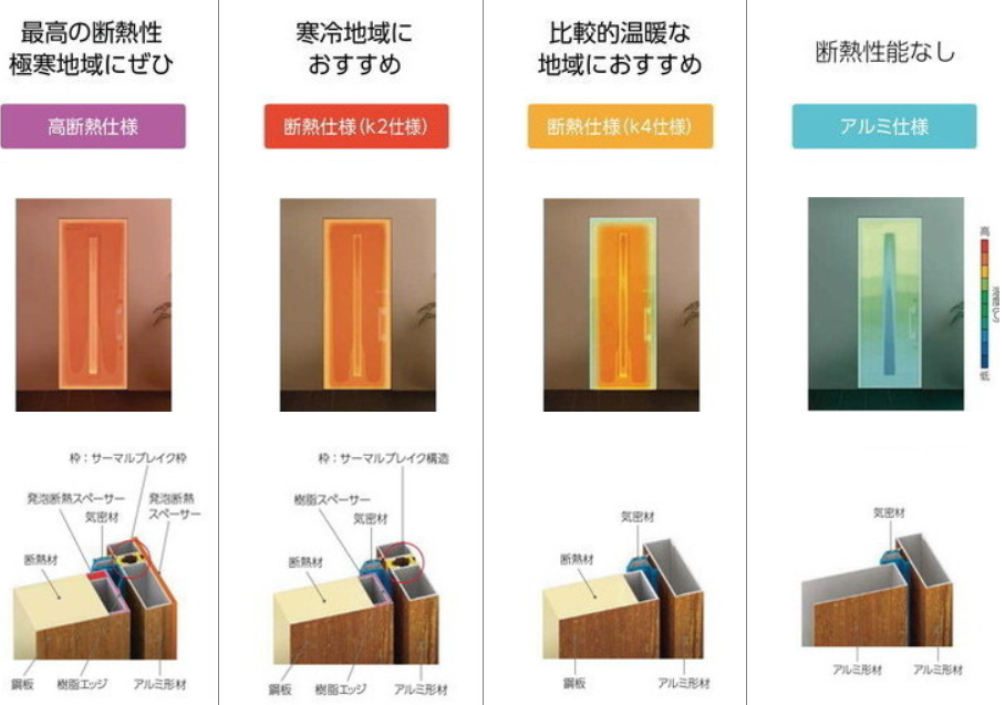中でも、LIXILのリシェントシリーズは寒冷地向けに設計された高性能な断熱ドアとして人気があります。優れた断熱性能に加え、デザインのバリエーションも豊富で、お家の外観をおしゃれに演出することもできます。
