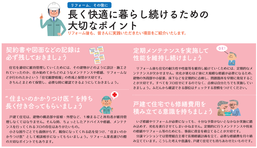 リフォーム工事が終わった後も末永く快適に暮らす為の、幾つかのポイントが有ります。