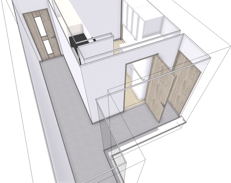 どのような建具を設置すれば良いか、どのように動線を確保するのが最良なのかが一目瞭然でイメージが出来ます。