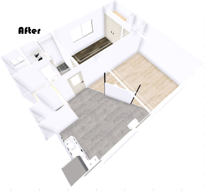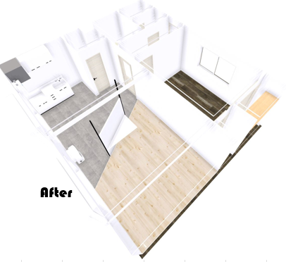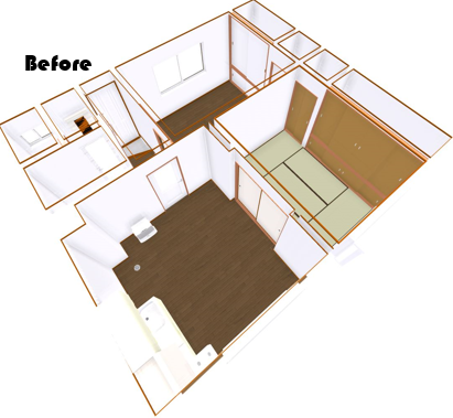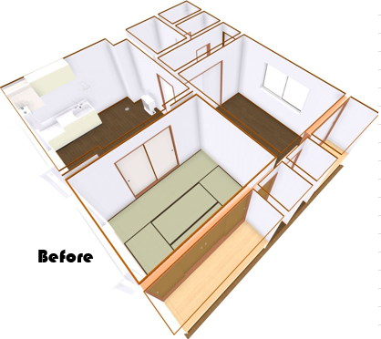 古いアパートの一室に、今、革新の風が吹き始めています。和室の壁が解体され、ここで生まれる新しい空間は、ただのリノベーションではなく、まるで異国のアパートメントを思わせるような、独創的なデザインになっております。