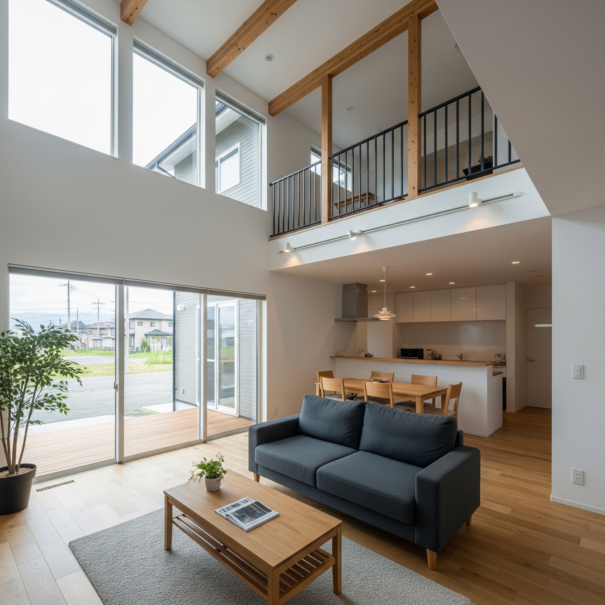 - コミュニケーションの活性化: 1階と2階が視覚的につながるため、家族間のコミュニケーションが取りやすくなります。例えば、1階で料理をしている間も、2階で遊ぶ子どもの声が聞こえ、つながりを感じられるでしょう。