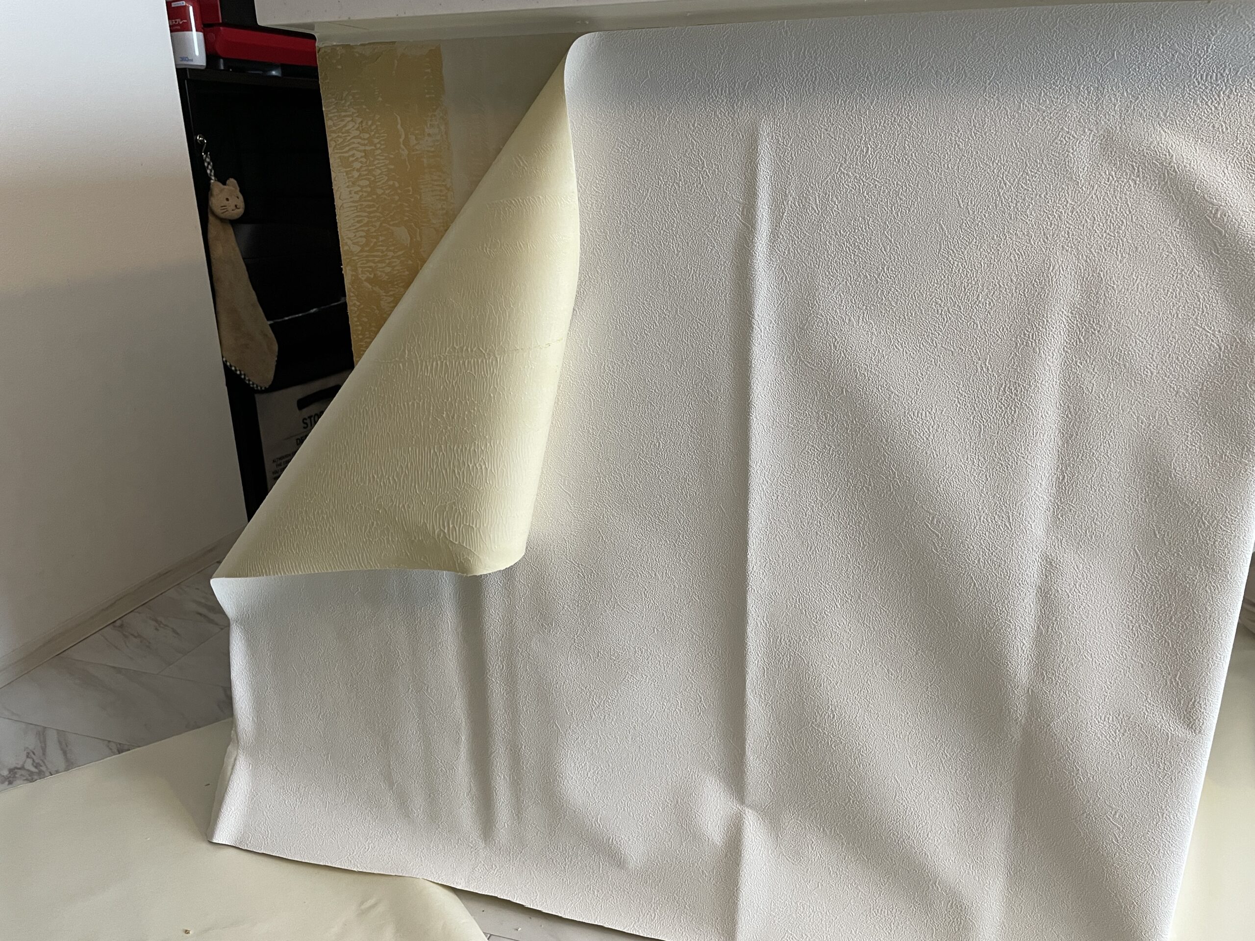 最後に、壁紙を貼り替えます。お客様が選んだ壁紙を新しい部分にしっかりと貼り、既存の壁紙との違和感がないように丁寧に仕上げました。