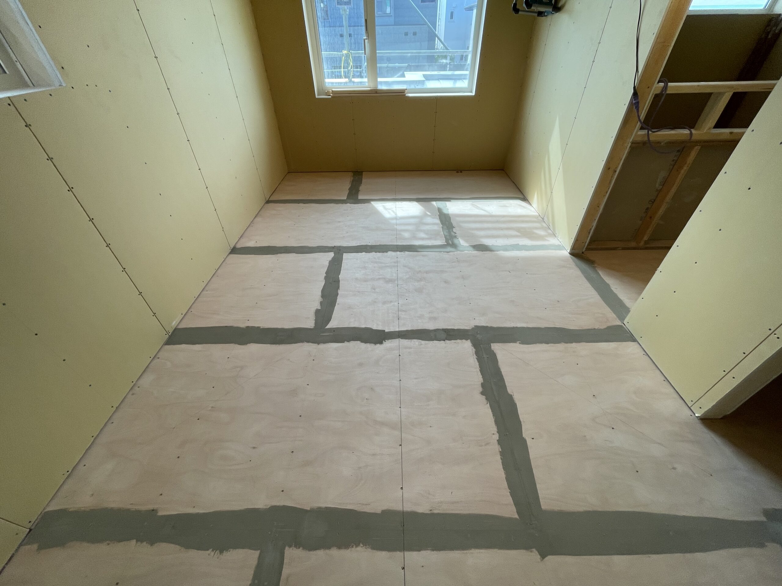 新しい床材を工事する際には、下地の仕上がりが質を左右します。そのため、大工さんは細心の注意を払いながら施工を行います。