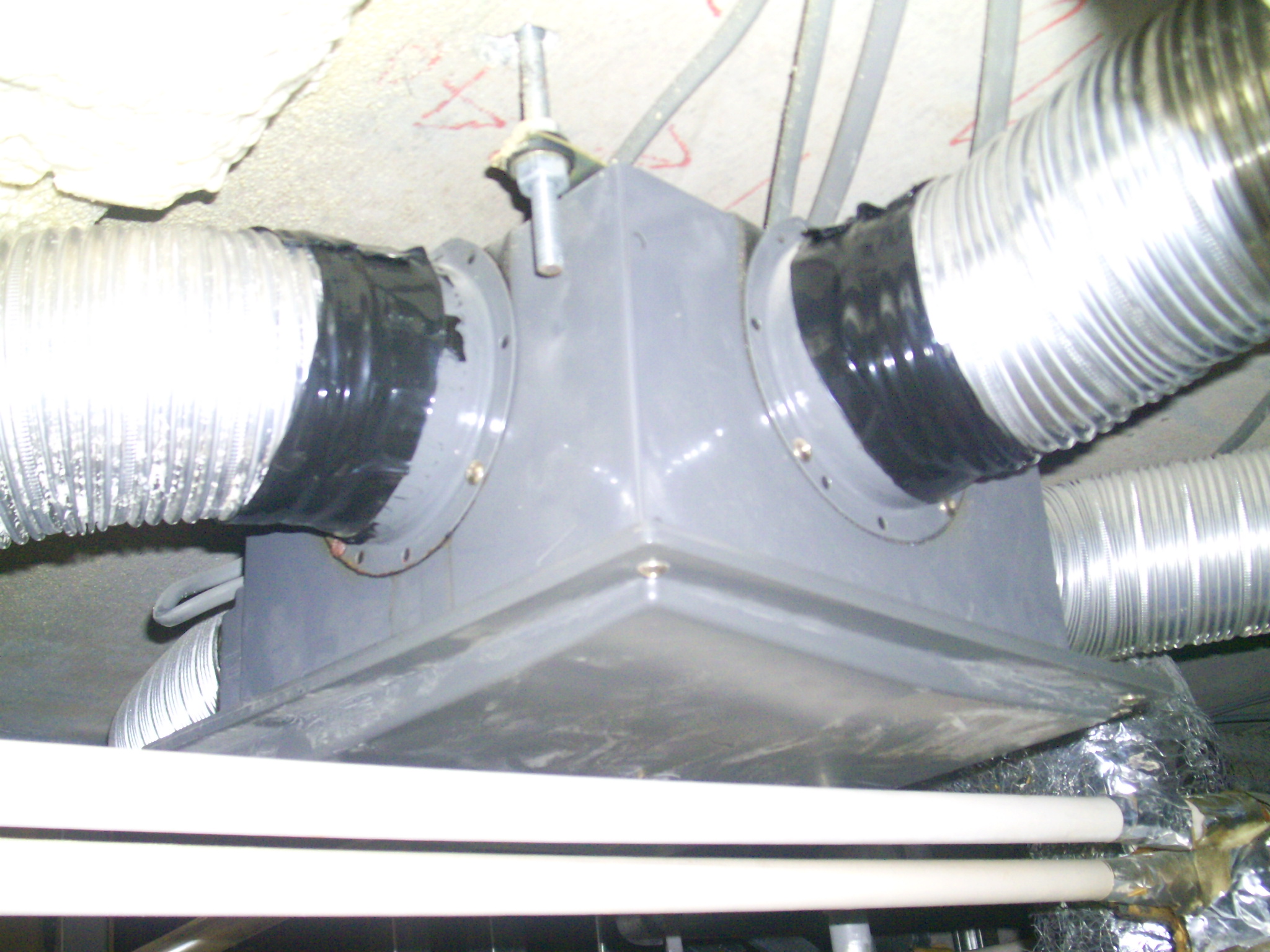天井裏に設置されている3室型の換気扇交換のご依頼を頂き、工事を行ってきました。このタイプの換気扇は、複数の部屋の空気を効率よく換気するために重要な役割を果たしています。