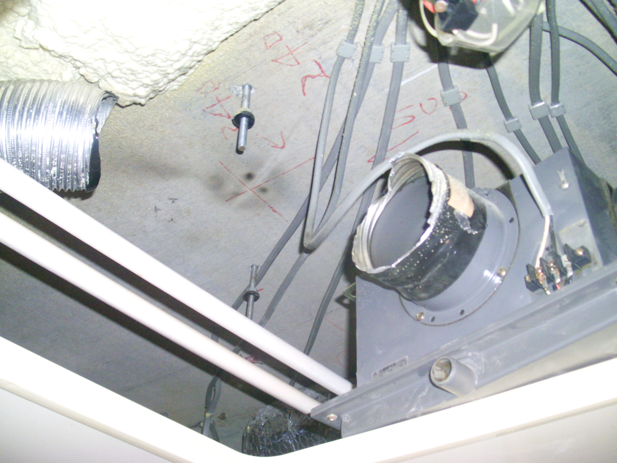 新しい換気扇を設置する際も、ダクトの接続や固定に加えて、電気配線の接続を確認し、正常に作動するかどうかをテストしました。最後に、配管や配線の整理整頓を行い、工事が完了しました。