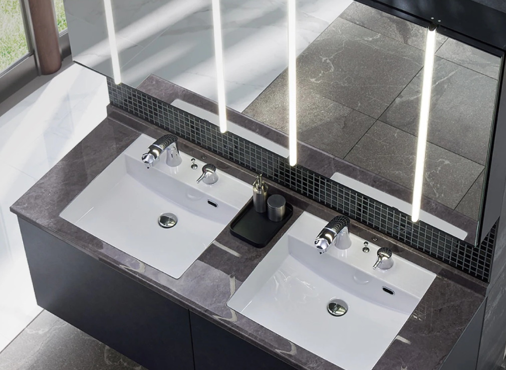 忙しい朝、家族で洗面台の取り合いになることはありませんか? ルミシスには、デザイン性と機能性を兼ね備えた2連の洗面ボウルタイプもあります。同時に使えるから、朝の準備もスムーズに!特にご家族の多いご家庭におすすめです。