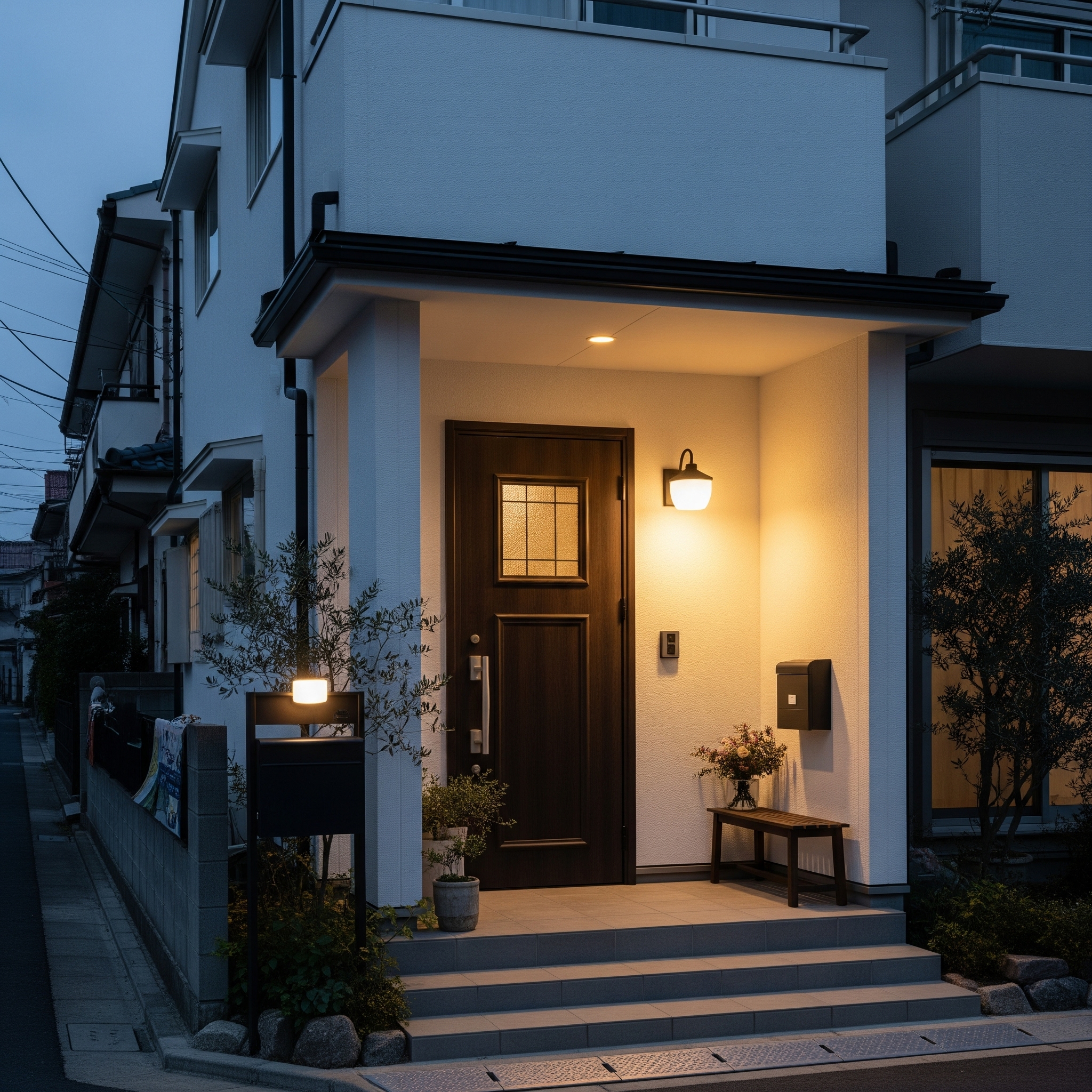 - 不審者の侵入を防ぐ: 明るく照らされた玄関は、不審者にとって侵入しにくい環境です。隠れる場所が少なくなるため、侵入を諦めさせる効果が期待できます。
