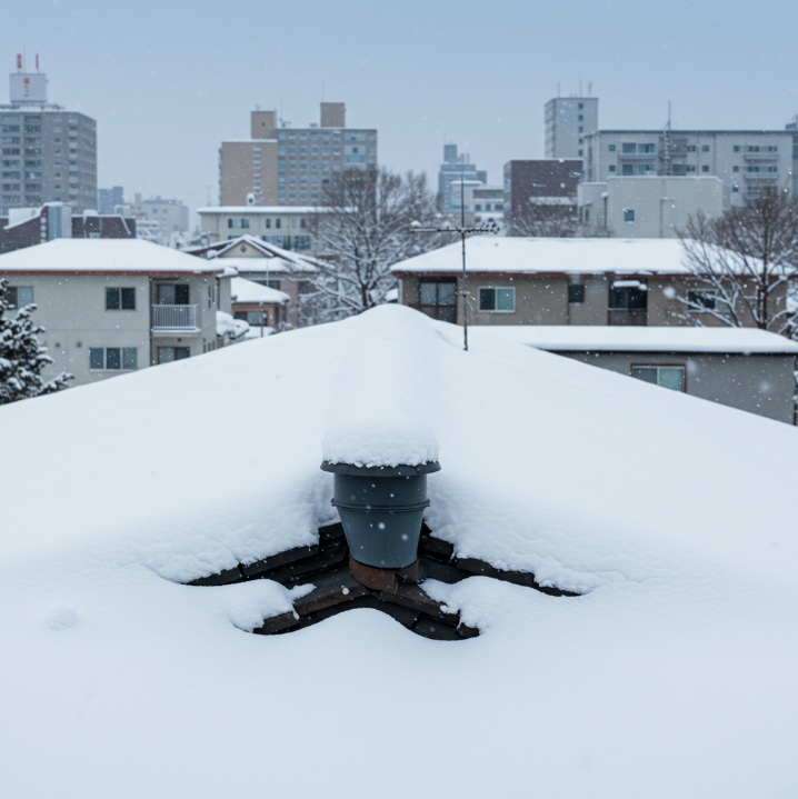 札幌のような降雪地では、冬期の屋根の点検は困難を極めます。一面の雪に覆われた屋根は、足場が悪く、危険を伴うため、専門業者でも容易には点検できません。