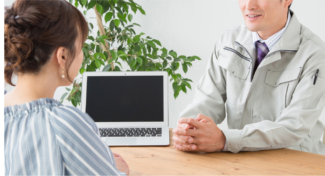 弊社では、営業・設計・工務の分業体制を採用し各部門の専門家がお客様の家づくりをサポートします。 -